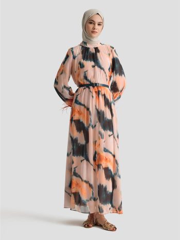 Armine Desenli Elbise 25YD4024 Mercan