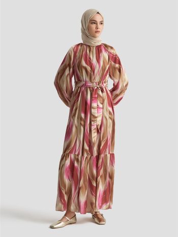 Armine Desenli Elbise 25YD4026 Fuşya