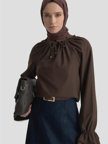 Armine Kolu Fırfırlı Bluz 25K3832 Acı Kahve