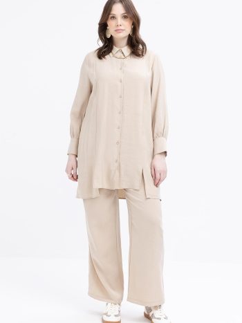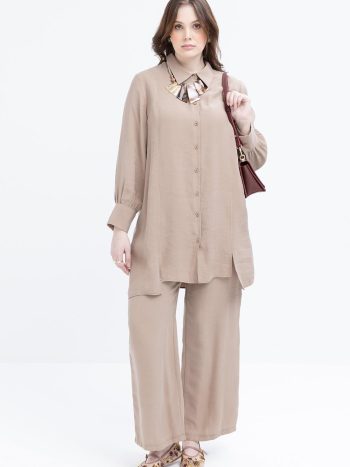 Bej-Büyük Beden Pantolonlu Takım