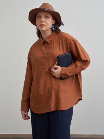 Kahve-KÖŞE MANŞET DETAYLI ŞIK DÜĞMELİ GÖMLEK