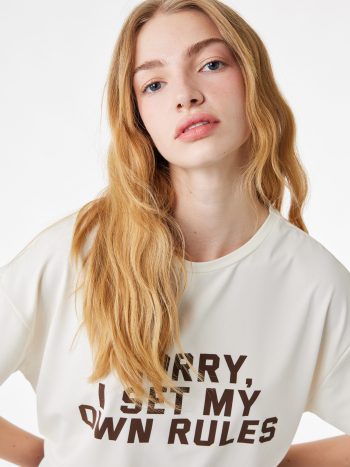 Rahat Kalıp Kısa Kollu Bisiklet Yaka Slogan Baskılı Tişört