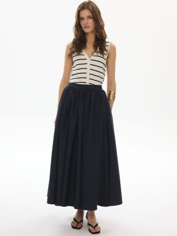 FLERA BALON LACİVERT ETEK ÖZELLİKLERİ Orta bel, büzgülü, arkadan gizli fermuarlı, yanlardan cepli, premium telalanmış hacimli duran kumaştan iç belli etmeyen astarsız balon etek. Kumaş İçeriği ve Yıkama Talimatı: %100 Polyester Yalnızca kuru temizleme yapınız. Manken Ürün Bedeni: S Manken Ölçüleri: Boy: 174 cm, Göğüs: 78 cm, Bel: 58 cm, Basen: 87 cm