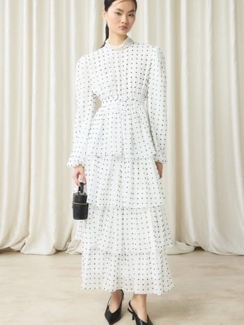 Şifon Puantiye Baskılı Kat Elbise – Ekru