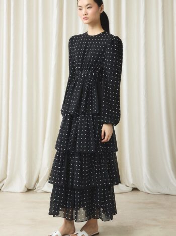 Şifon Puantiye Baskılı Kat Elbise – Siyah