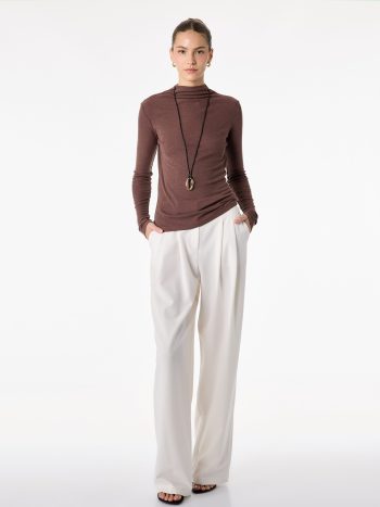 Koyun Yünü Karışımlı Slim Fit Uzun Kollu Dik Yaka Tişört