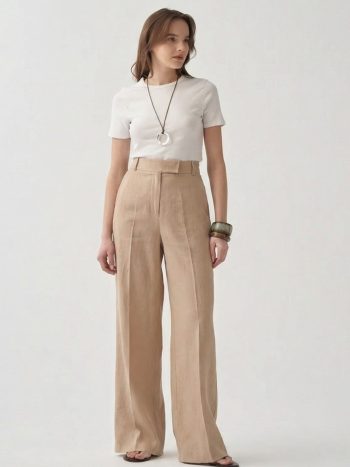 Şıklığı detaylarda arayanlara özel Bej-Keten Palazzo Pantolon ile zarif bir görünüm yakalayın. Günlük ve özel kombinler için ideal tasarım —