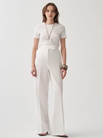 Şıklığı detaylarda arayanlar için tasarlanan Beyaz Keten Palazzo Pantolon ile zarif bir görünüm yakalayın. Günlük ve özel kombinler için ideal