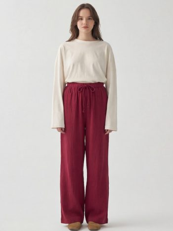 Şıklığı detaylarda arayanlara özel Bordo-Beli Lastikli Müslin Pantolon ile zarif bir görünüm yakalayın. Günlük ve özel kombinler için ideal tasarım