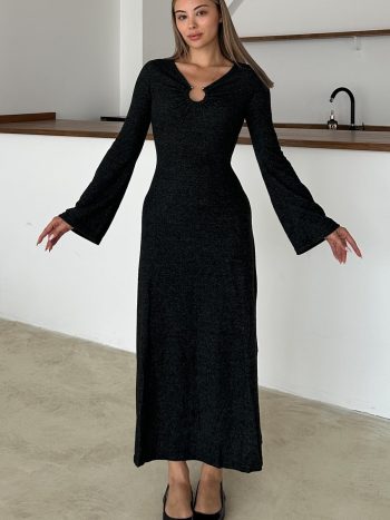 Önü Aksesuarlı Örme Elbise ANTRASİT 9367-E