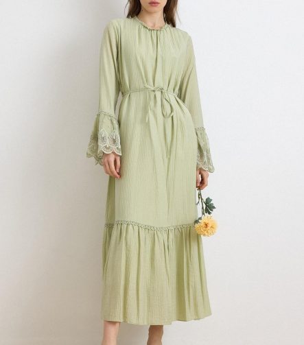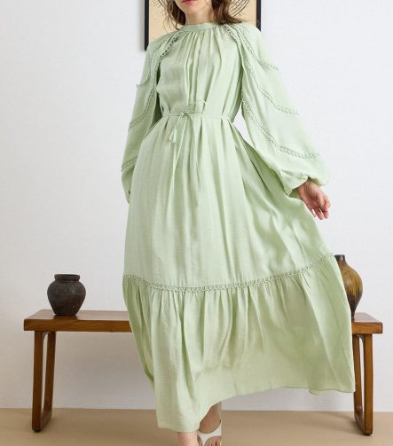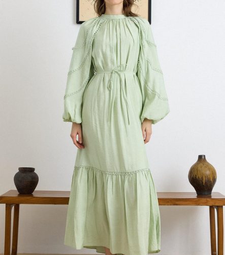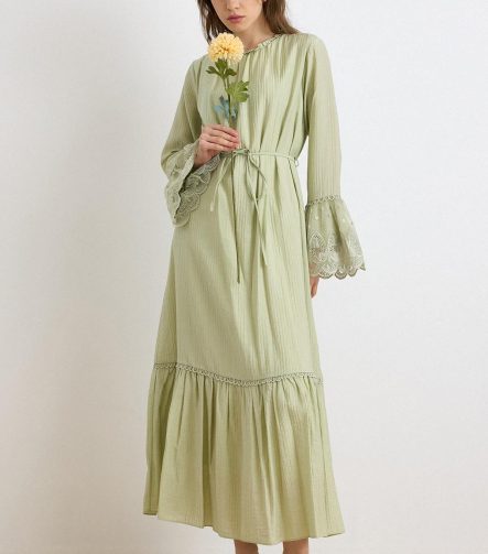 Fisto Detaylı Balon Kol Pamuklu Elbise MİNT 9427-E