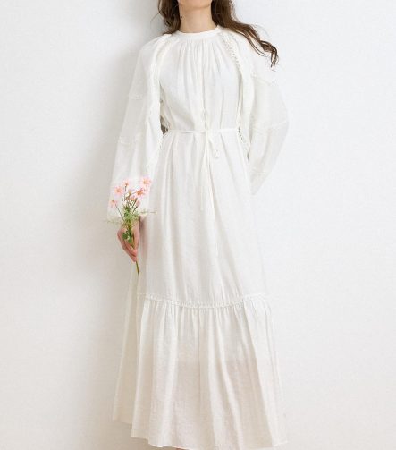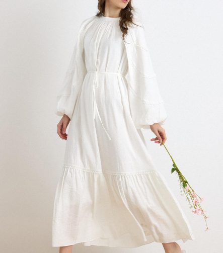 Fisto Detaylı Balon Kol Pamuklu Elbise BEYAZ 9427-E