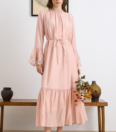 Fisto Detaylı Kolları Güpürlü Elbise PUDRA 9429-E