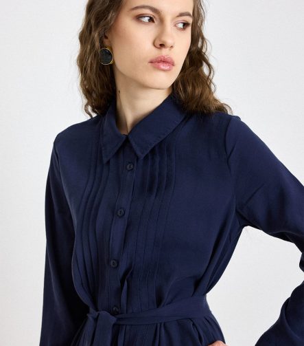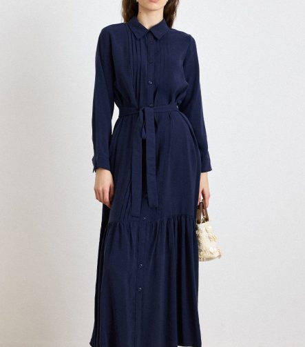 Nervür Detaylı Eteği Fırfırlı Soft Kumaş Elbise LACİVERT 9441-E