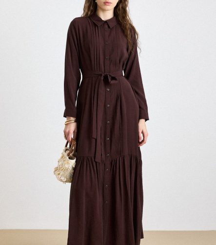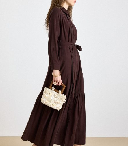Nervür Detaylı Eteği Fırfırlı Soft Kumaş Elbise KAHVE 9441-E