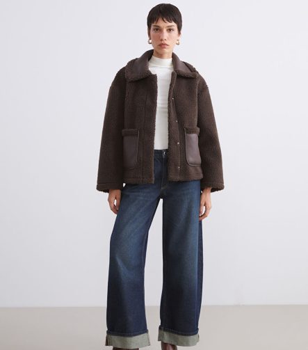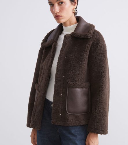 Kahverengi Ceket Yaka Kadın Teddy Kaban