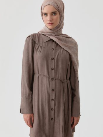 Robalı Büzgülü Tunik – Kahve