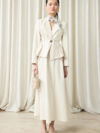 Belden Oturtmalı Ceketli Etek Takım – Bej