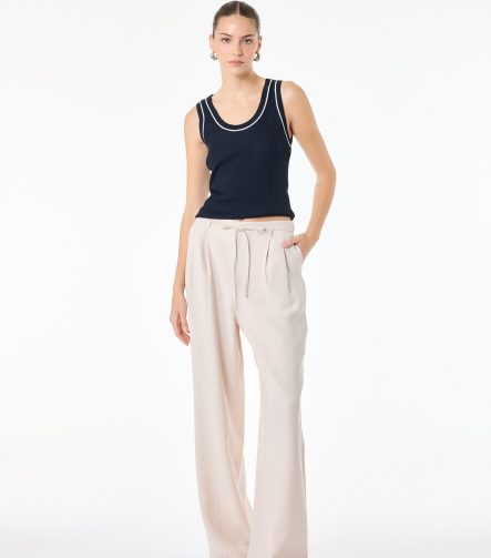 Modal Kumaş Beli Bağcıklı Geniş Paça Palazzo Pantolon