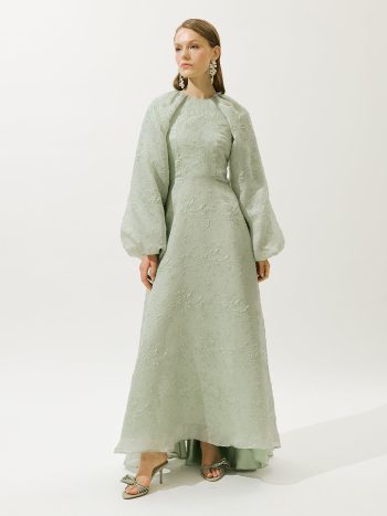 Jakarlı Organze Abiye Elbise Nane Yeşili