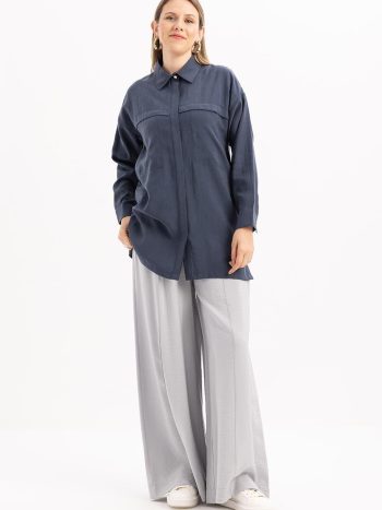 Indigo Cepli Gizli Patlı Gömlek Tunik