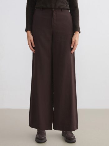 Kahverengi Standart Fit Geniş Paça Kadın Pantolon
