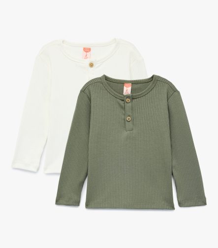 Erkek Bebek Düğmeli Uzun Kollu Bisiklet Yaka 2’li Basic Tişört Seti