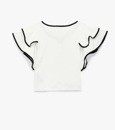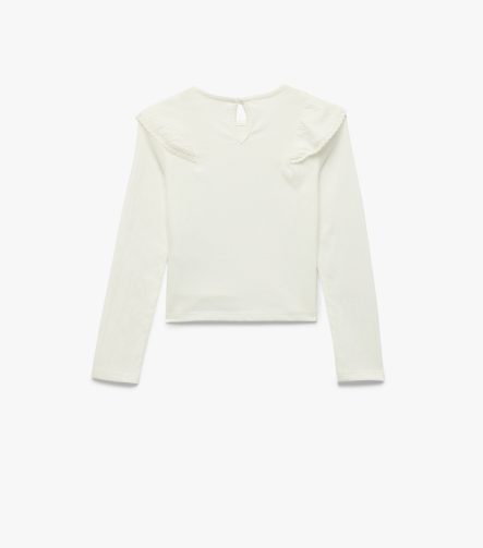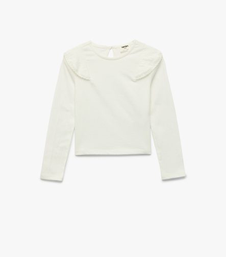 Kız Çocuk Uzun Kollu Fırfır Detaylı Bisiklet Yaka Pamuklu Bluz