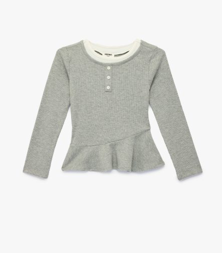 Kız Çocuk Uzun Kollu Bisiklet Yaka Düğme Detaylı Kaşkorse Bluz