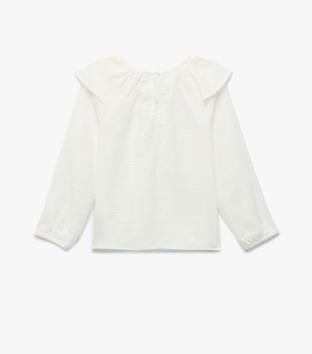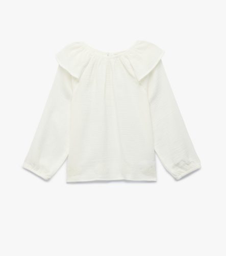 Kız Çocuk Pamuklu Uzun Kollu Bisiklet Yaka Fırfırlı Bluz