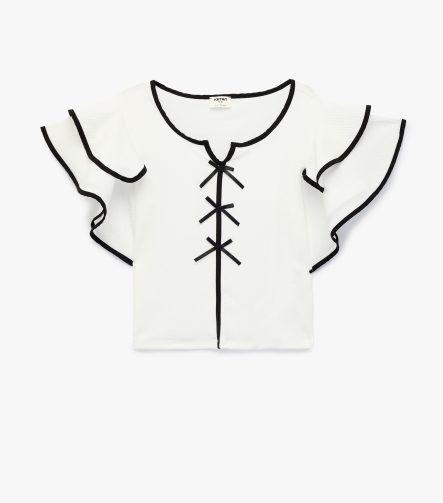 Fiyonk Detaylı Kısa Kollu V Yaka Bluz