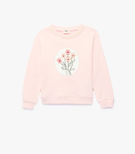 Kız Çocuk Nakış Detaylı Uzun Kollu Bisiklet Yaka Sweatshirt