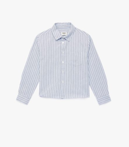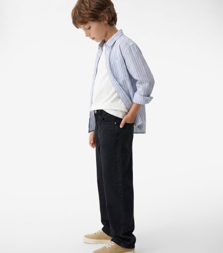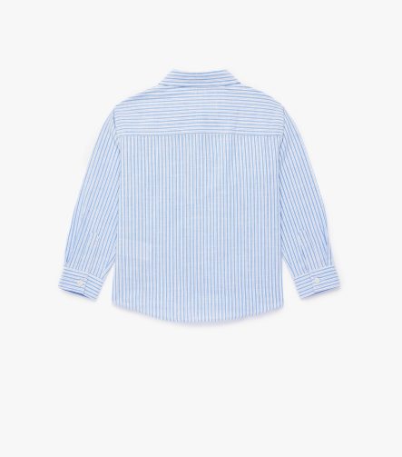 Erkek Çocuk Pamuklu Uzun Kollu Düğmeli Tek Cepli Çizgili Gömlek