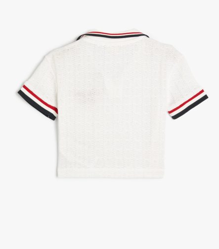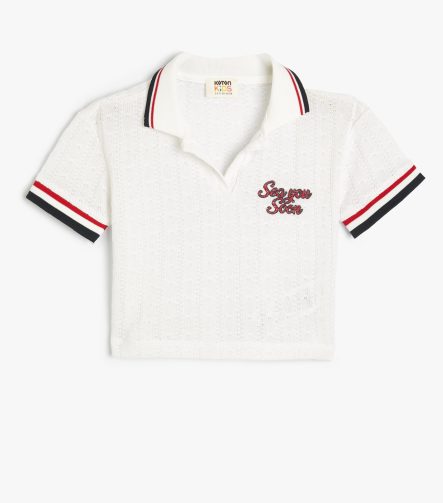 Kız Çocuk Polo Yaka Tişört Baskı Detaylı Renk Bloklu