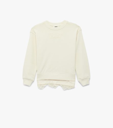 Kız Çocuk Uzun Kollu Bisiklet Yaka Dantel Detaylı Pamuklu Sweatshirt