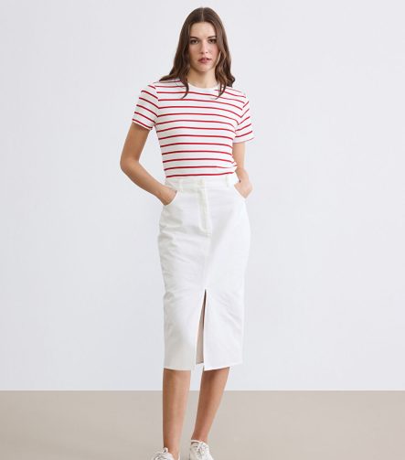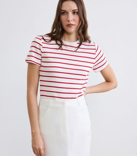 Kırmızı Bisiklet Yaka Çizgili Kadın Tişört