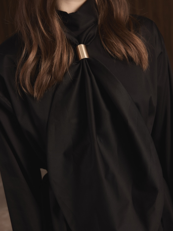 Kravat Detay Pamuk Saten Gömlek – Siyah