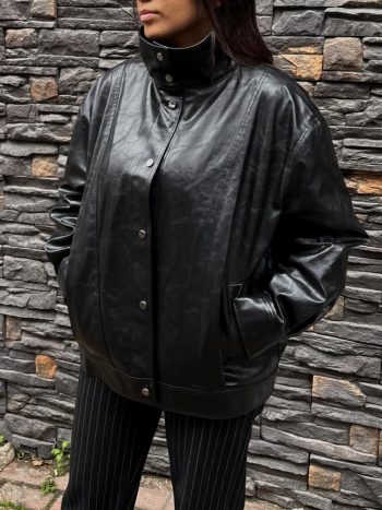 Şık ve dayanıklı siyah deri ceket, her gardıroba modern bir dokunuş katar. Kaliteli malzemelerle üretilmiş olup, hem günlük kullanım hem
