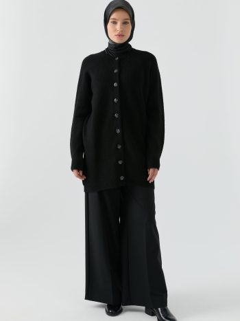 Siyah-Yumuşak Dokulu Nervürlü Tunik