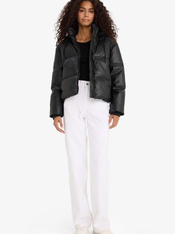 Regular Fit Kapüşonlu Polar Astarlı Suni Deri Mont, şık suni deri dış yüzeyi ve yumuşak polar astarıyla hem tarz hem