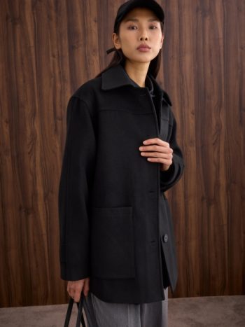 Yün Karışımlı Kuşaklı Kaban – Siyah