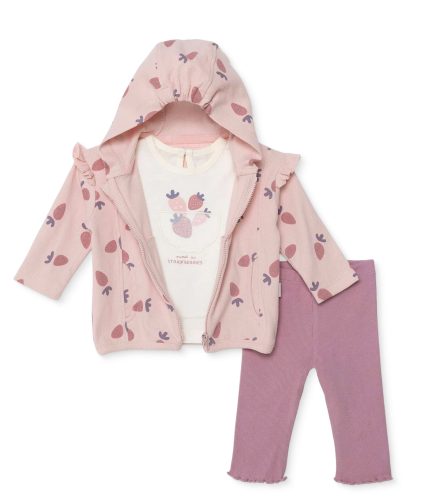 Bebetto, Kız, Sweatshirt-Hırka-Patiksiz Alt, Meyve Baskılı, Fermuarlı, Strawberry, Bisiklet Yaka, Uzun, Uzun Kol
