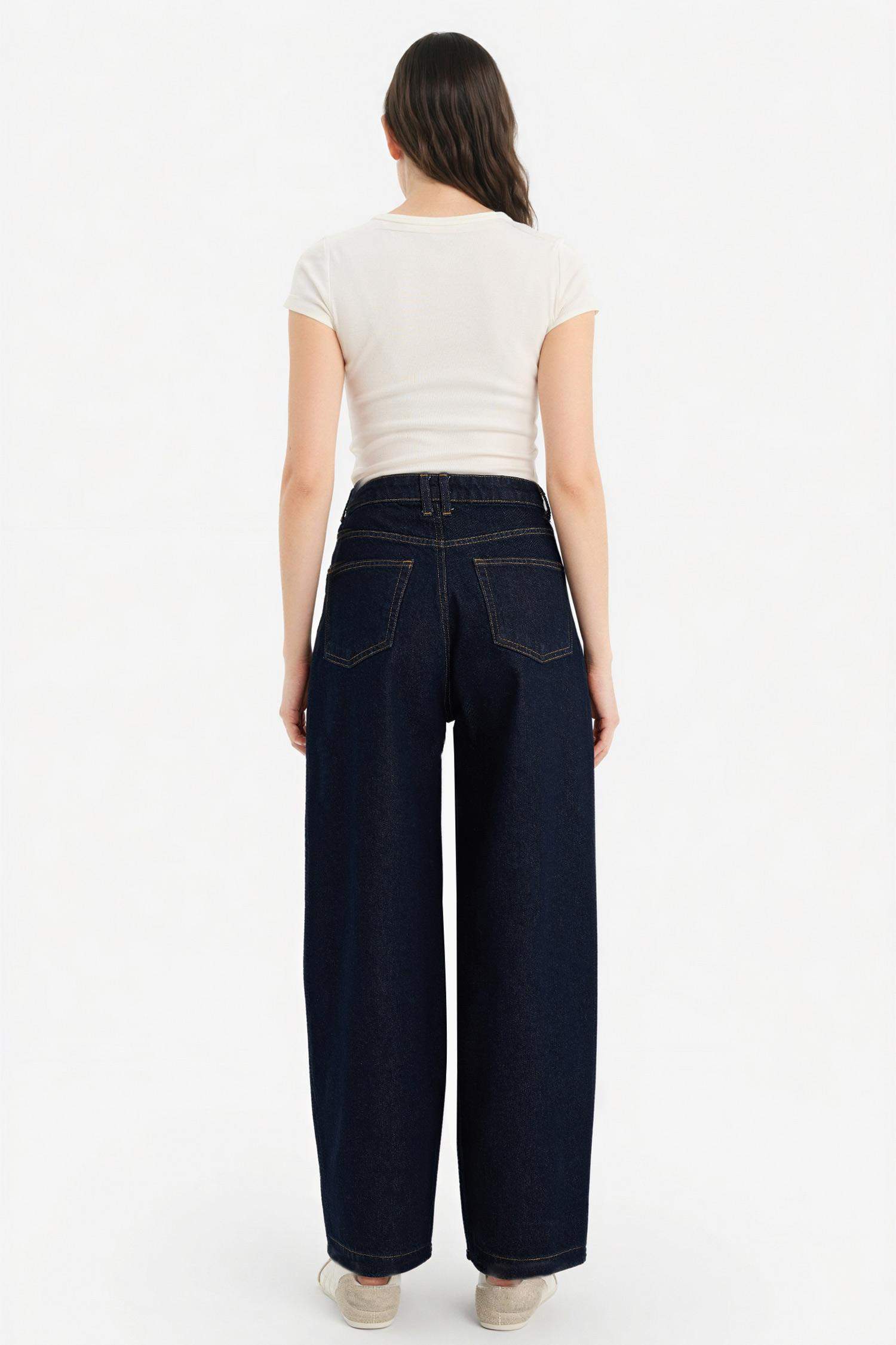 %100 Pamuk Barrel Fıt Yüksek Bel Jean Pantolon