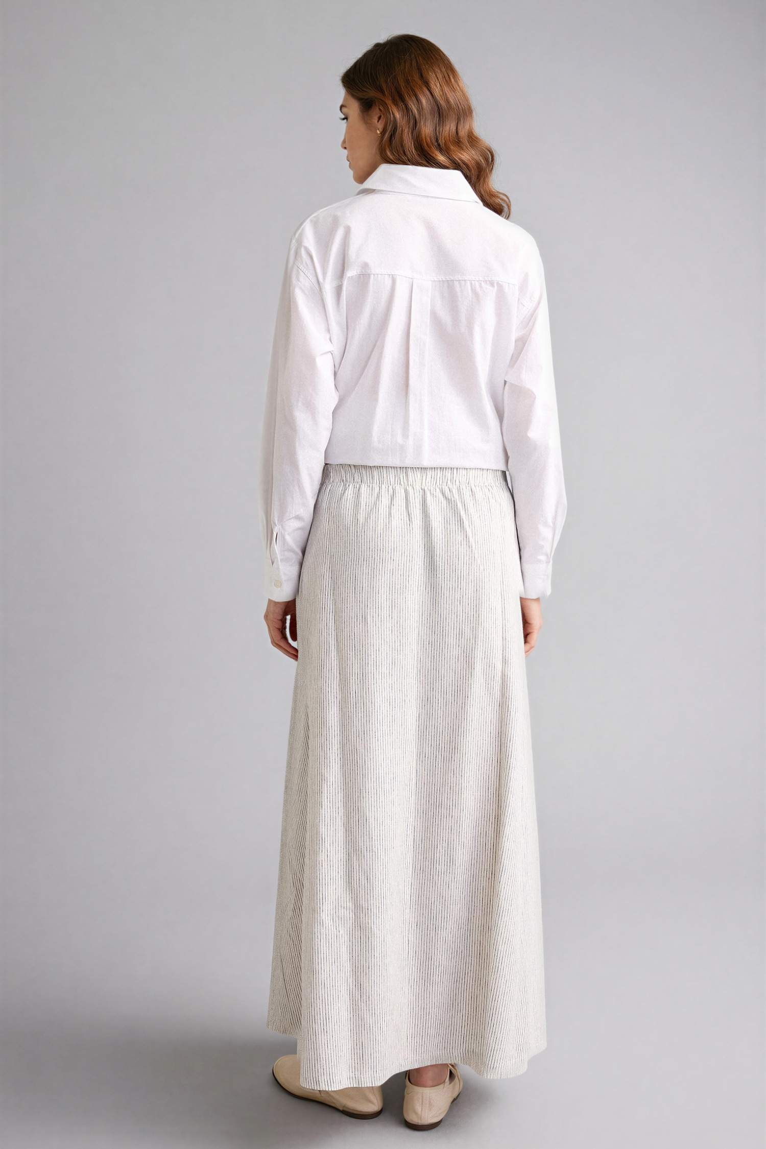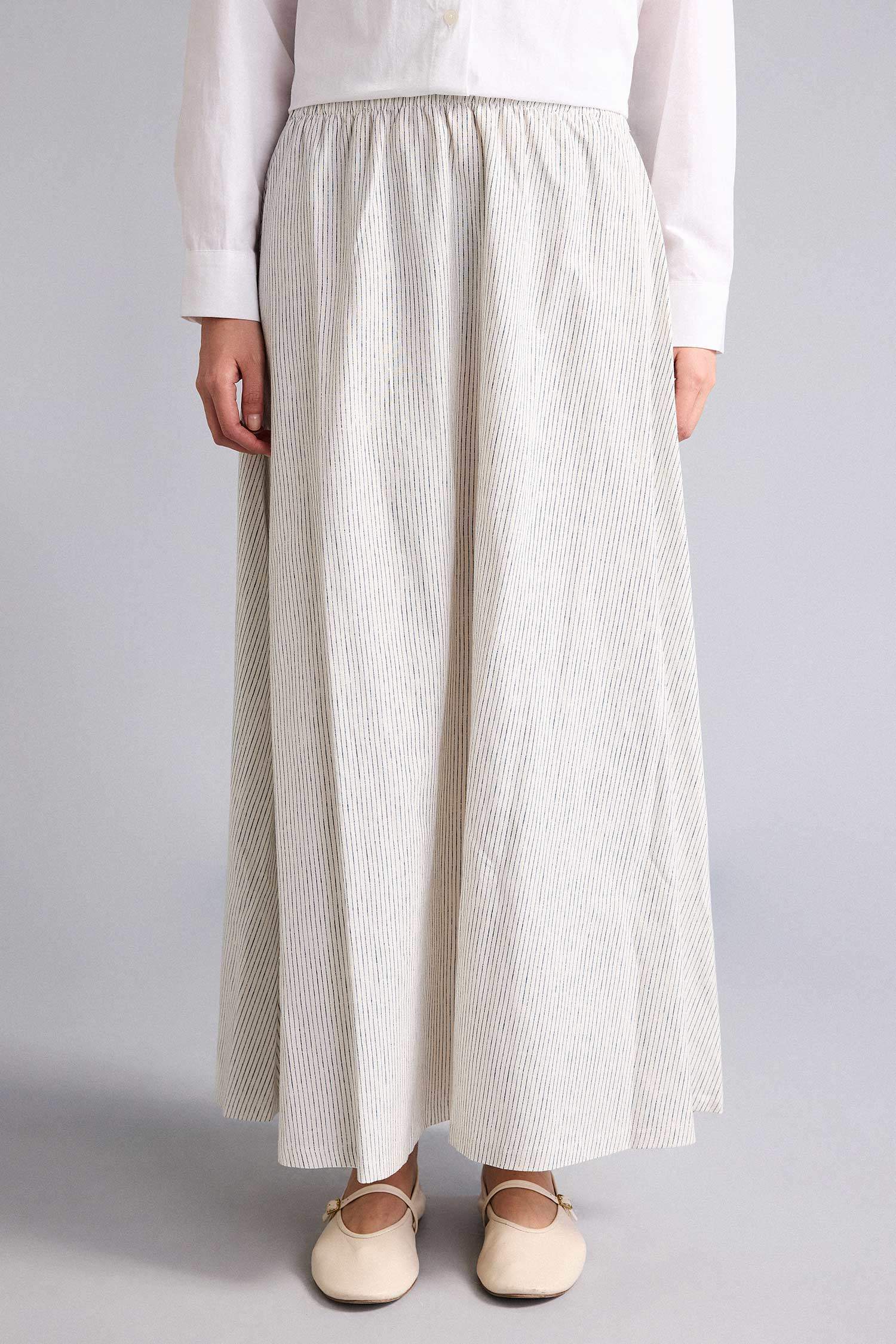 A Kesim Çizgili Keten Etek