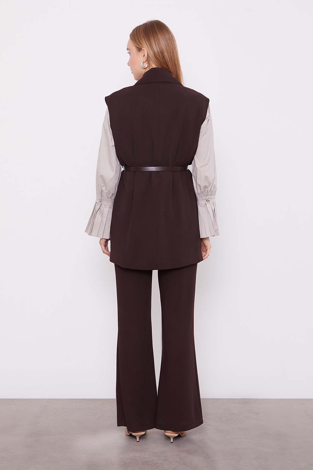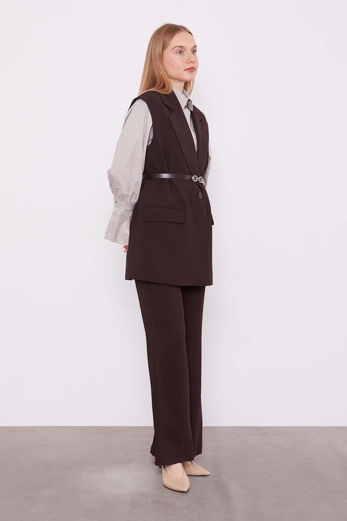 Zarif detayıyla göz kamaştıran yelekli ikili takım özel davetlerden günlük şıklığa kadar pek çok alanda kullanılabilecek çok yönlü bir seçenektir. Hem zarif görünmek hem de rahat hissetmek isteyen bayanlar için ideal bir tercihtir. Detaylardaki özen tasarımı ve sofistike duruşuyla her ortamda zarif olmak isteyenler için ideal bir seçenek halini alıyor. Gündüzden geceye kolayca uyarlanabilen bu yelekli takım dolabınızın kurtarıcı parçası oluyor.