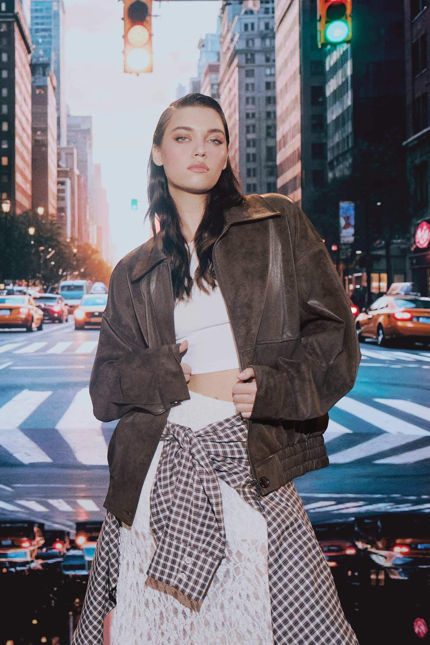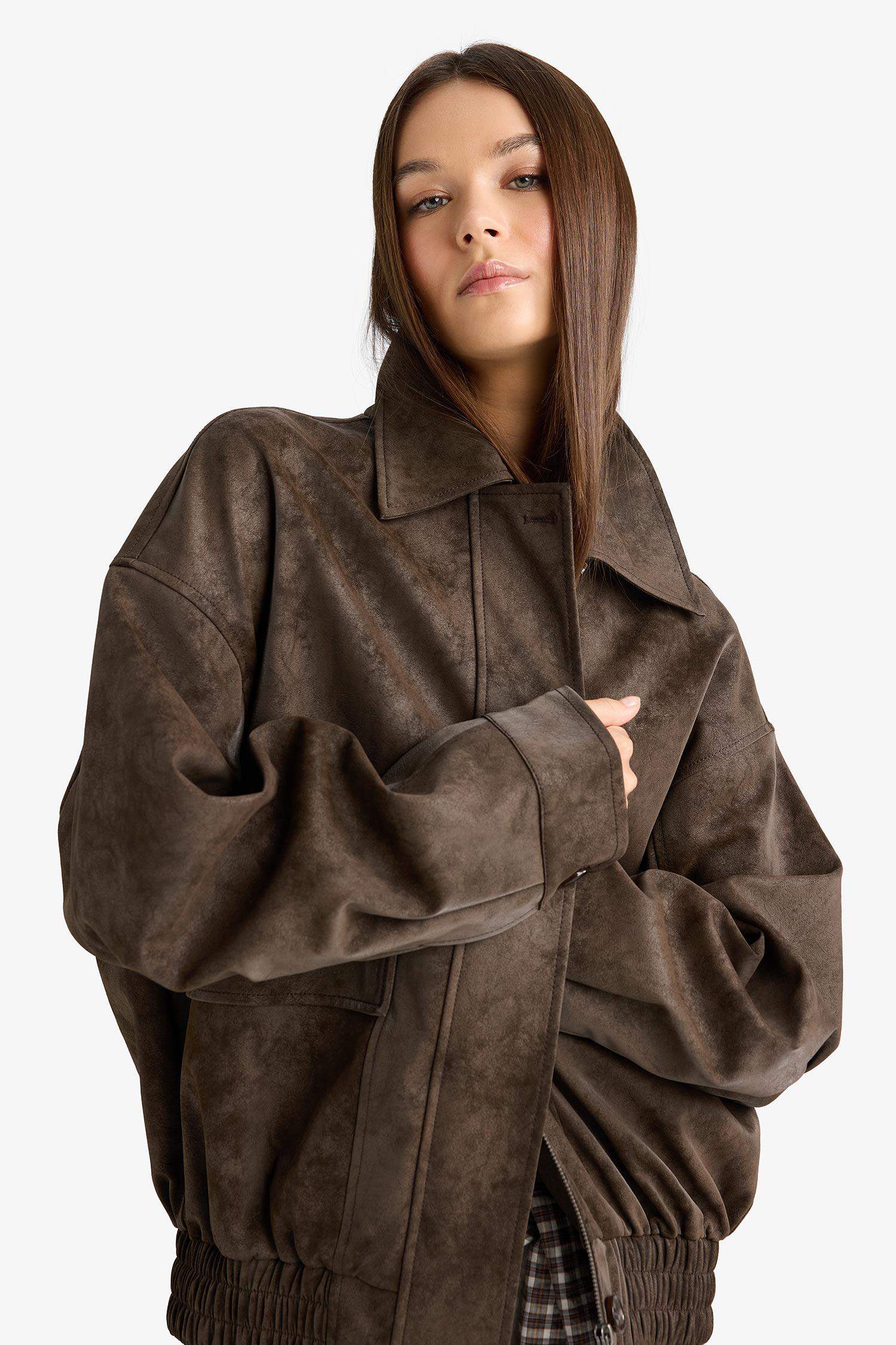 Afra x DeFacto Dad Fit Polo Yaka Fermuarlı Süet Ceket