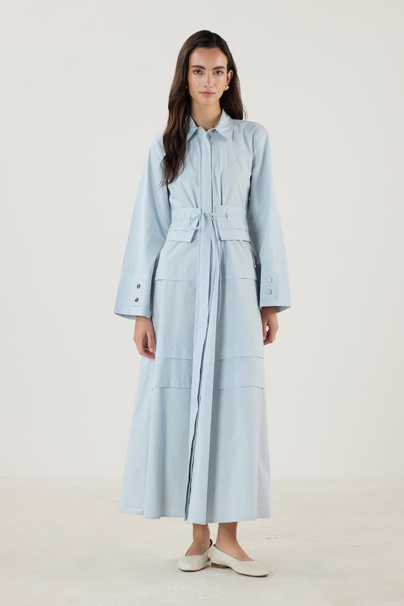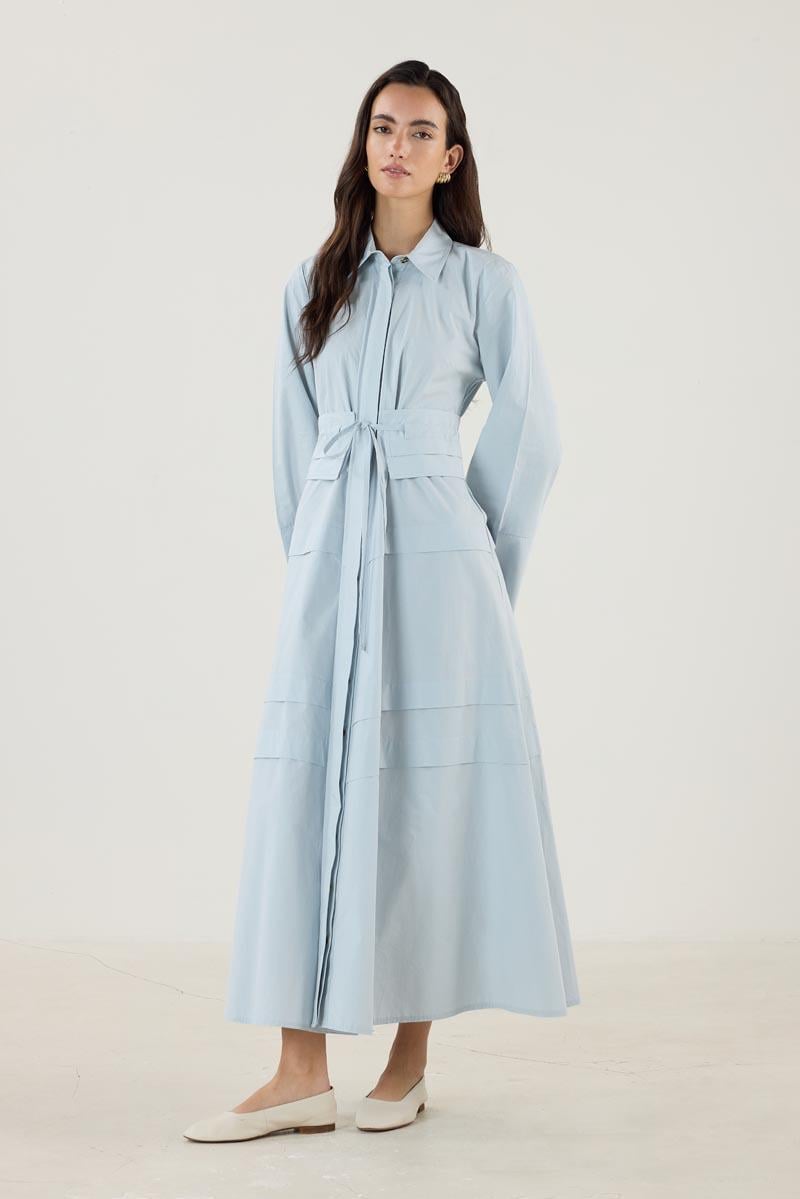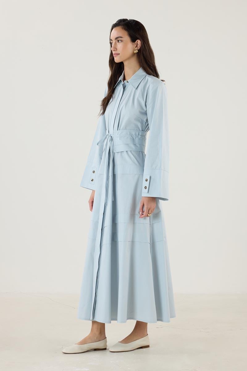 Aller Detaylı %100 Pamuk Elbise Buz Mavisi