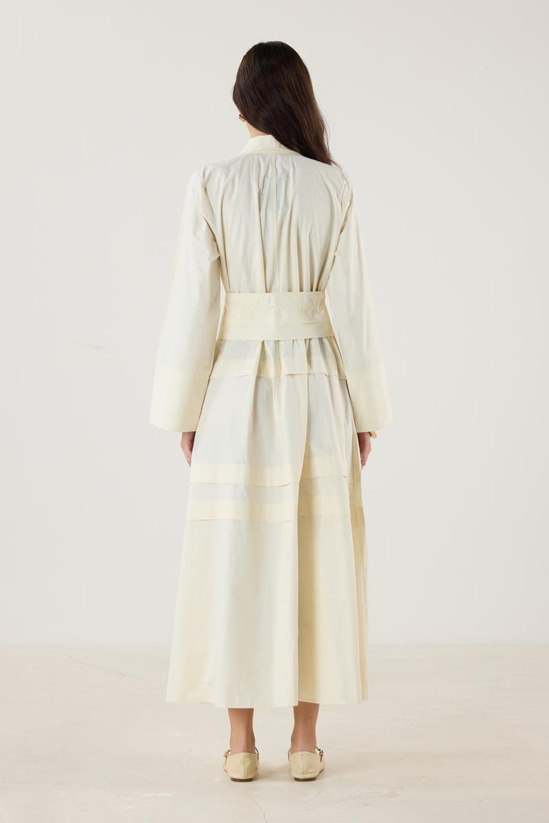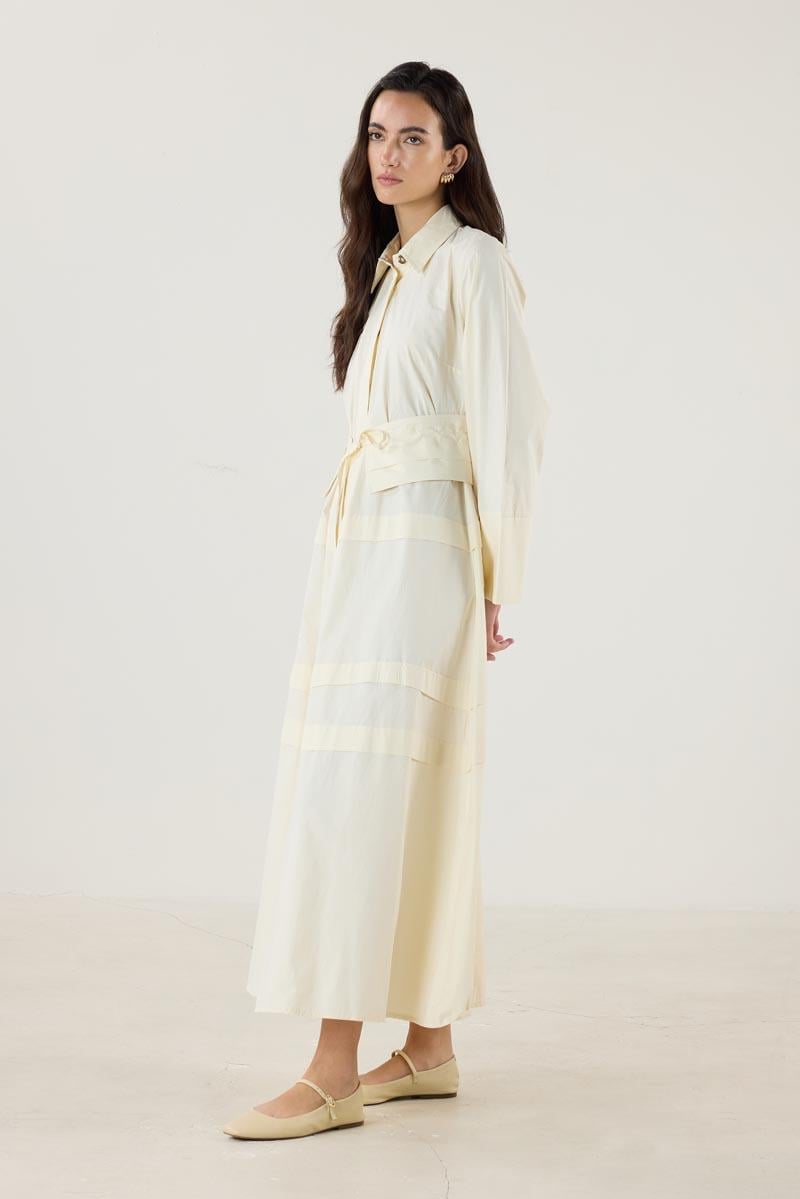 Aller Detaylı %100 Pamuk Elbise Krem