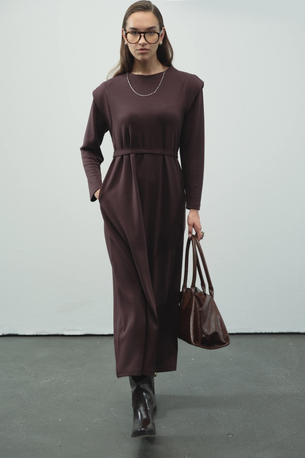 Aller Detaylı Compact Pamuklu Kahve Elbise