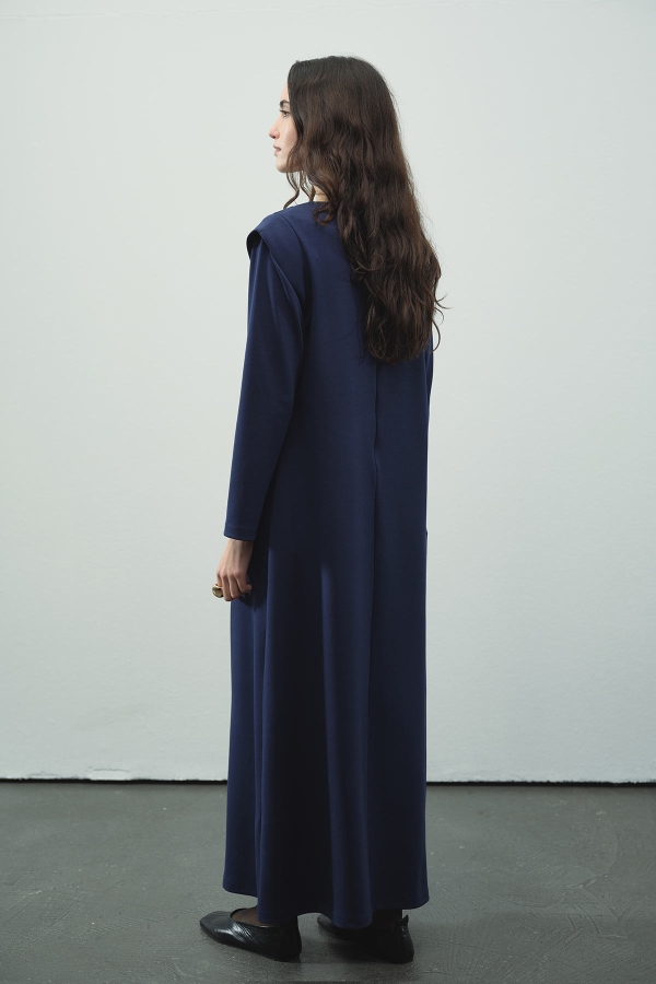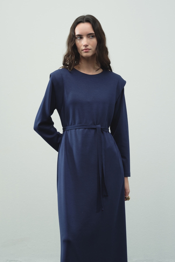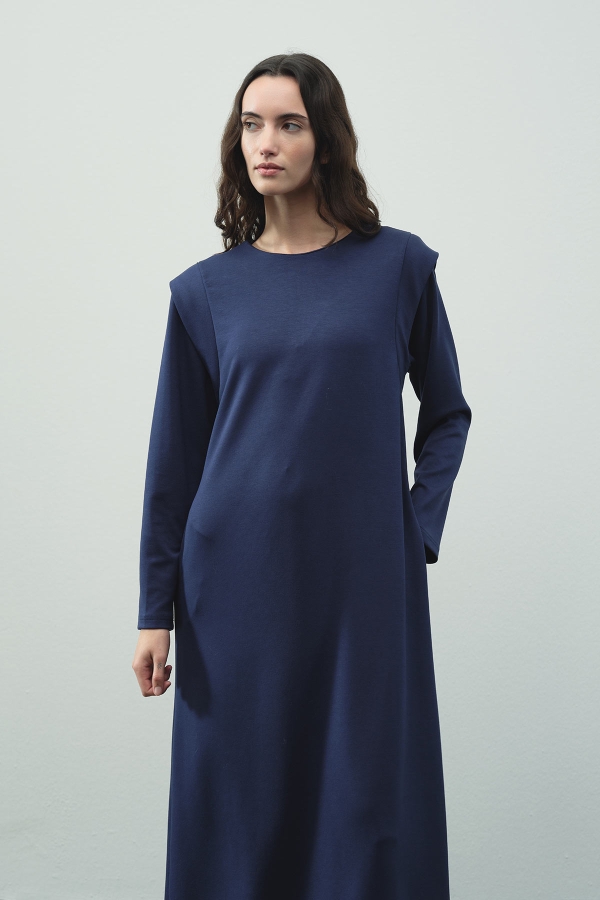 Aller Detaylı Compact Pamuklu Lacivert Elbise